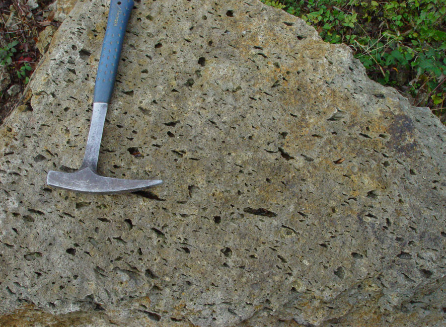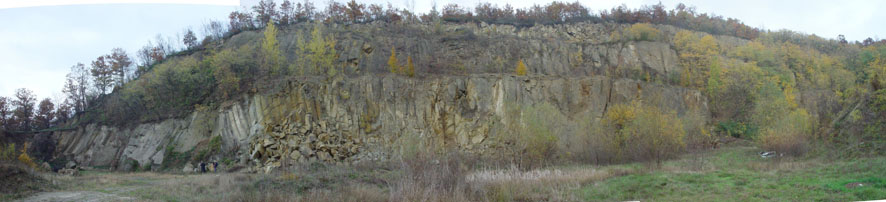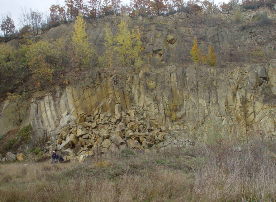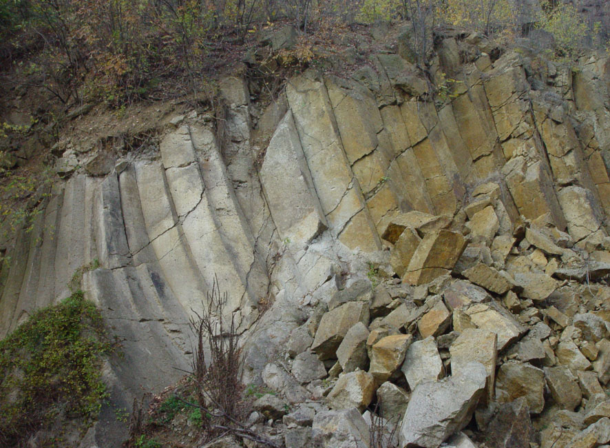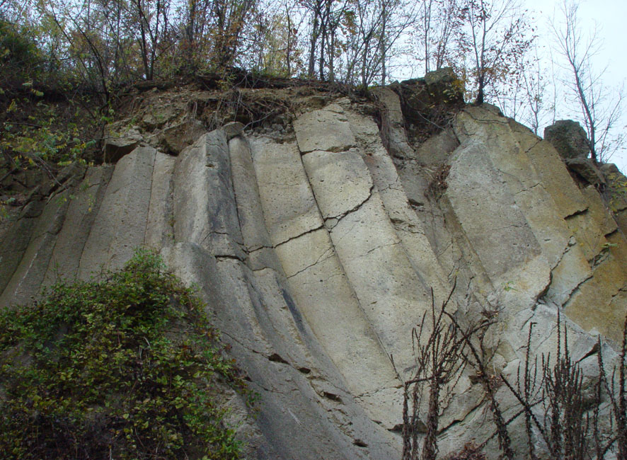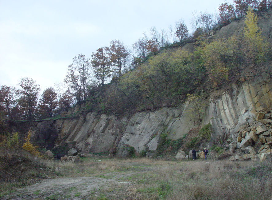 Изданак ових стена може се видети на напуштеном мајдану у коме је вршена експлоатација ових стена. Дужине је преко 100 метара а висине до 10 метара. Осим карактеристичне текстуре, присуства фјама и шупљина које су настале одласком гасова из лаве у току ерупције веома добро је развијено и плнпралелено лучење. Стубови су дебљине до 1 м, и на појединим местима повијају стварајући карактеристичне лучне облике. Стене су миоценске старости и везане су за вулканизам Рудника и Љига. |